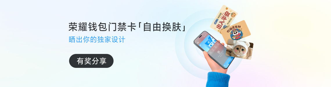 [表情]全体注意,新功能速递——荣耀钱包门禁卡,支持自定义卡面啦! 天天用的门禁卡,看都看腻了?不想再和同事邻居“撞卡”? 刷卡动 ...